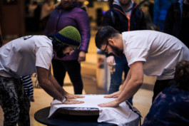 Mit einer originalen US-Army Stanzmaschine werden hier individuelle Malschablonen angefertigt - inspiriert von Banksy’s Street-Art Technik. Die Buchstaben und Ziffern können in Form von Namen, Initialen, persönlichen Codes und Friedensbotschaften vor Ort gestanzt und als Print auf die Kleidung & Accessoires gepinselt werden.