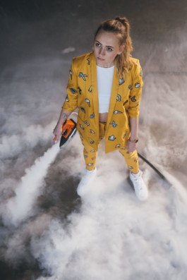 Eine Auswahl an Illustrationen von Streetart-Künstlern zum Thema Mode und Camping können via schwarzem oder weißem Flexdruck auf die Kleidung gedruckt werden. Dabei können die Motive zerschnitten und à la Collage individuell zusammengesetzt werden.